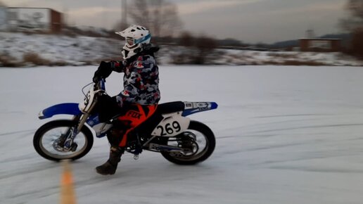 На мотоцикле по льду - первое обучение на Yamaha yz250f