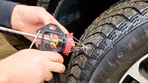 Дошиповка шин самодельным шипуном из строительного инструмента, показываю