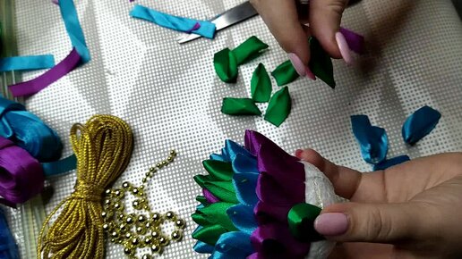 Новогодняя игрушка на елку. Шарик из лент.