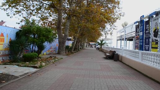 Набережная в Лазаревском глубокой осенью: река Псезуапсе, пляж "Багратион", пляжные аэрарии