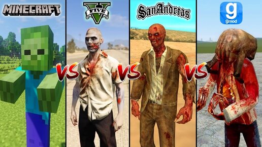 MINECRAFT ZOMBIE VS GTA 5 ZOMBIE VS GTA SA ZOMBIE VS GARRY'S MOD ZOMBIE - WHO IS BEST?