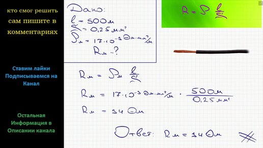 Физика Каково сопротивление медного провода длиной 500 м, если площадь его поперечного сечения 0,25 мм2?