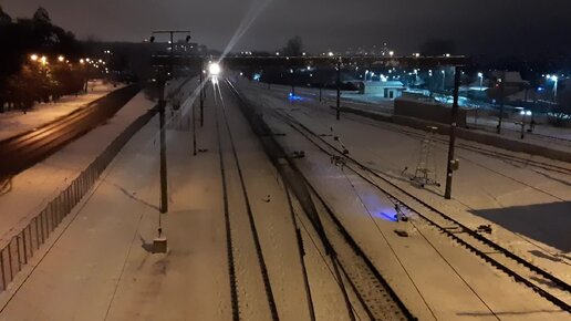Темным вечером зеленый межрегиональный Витебск-Минск