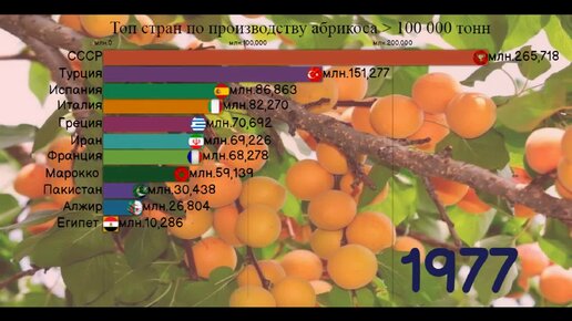 Производство абрикосов более 100 млн тонн 1975-2020. [ИНФОГРАФИКА]