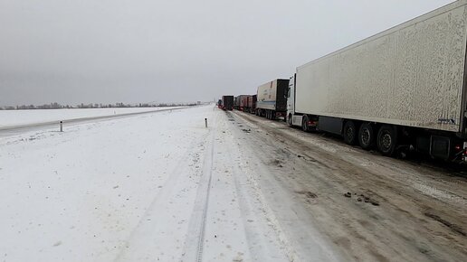 Зимний дальнобой на фуре. Трасса м4 вся встала, фура улетела с трассы.
