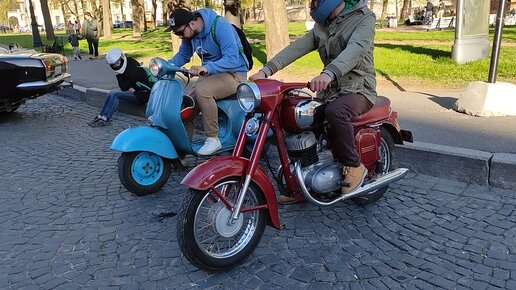 Чехословацкий мотоцикл Jawa Старушка вишневая классика на все времена и мотороллер Вятка ВП-150, эх где мои 17 лет!))