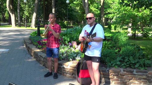 КРУТО ИГРАЮТ УЛИЧНЫЕ МУЗЫКАНТЫ... В ПАРКЕ, ГИТАРИСТ И ТРУБАЧ.