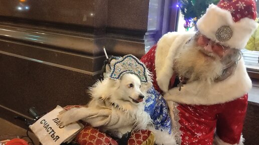Старые знакомые, Дедушка Мороз Владимир Михайлович и его помощница Снегурочка собачка Белла "Лаю счастья" встречают прохожих на Невском...