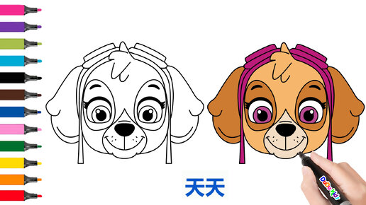 Как Нарисовать Скай из Щенячий Патруль. Уроки рисования для детей поэтапно. Обучающее видео. How to draw Skye from PAW Patrol.