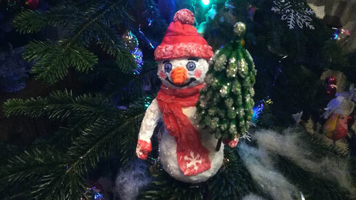 ЕЛОЧНАЯ ИГРУШКА СНЕГОВИК ИЗ ВАТЫ