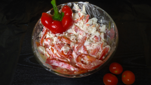 В этом салате крабовые палочки получают вкус кальмара. Полезный и вкусный салат, который можно приготовить на праздничный стол