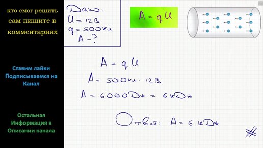 Физика По проводнику, к концам которого приложено напряжение 12 В, прошел электрический заряд 500 Кл. Определите работу электрического тока