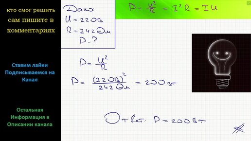 Физика Определите мощность тока в электрической лампе, включенной в сеть напряжением 220 В, если известно, что сопротивление нити накала