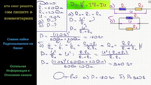 Физика Резисторы сопротивлениями 60 и 20 Ом включают в сеть напряжением 120 В. Найдите суммарную мощность тока в резисторах, если они