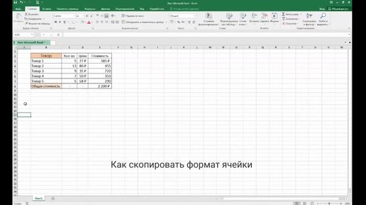 Как в Excel скопировать формат ячейки?