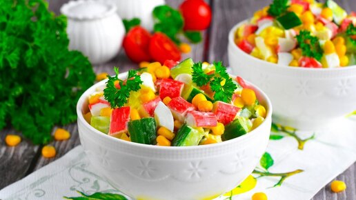 Салат с крабовыми палочками и свежим огурцом. Рецепт салата с крабовыми палочками. Как приготовить салат с крабовыми палочками.