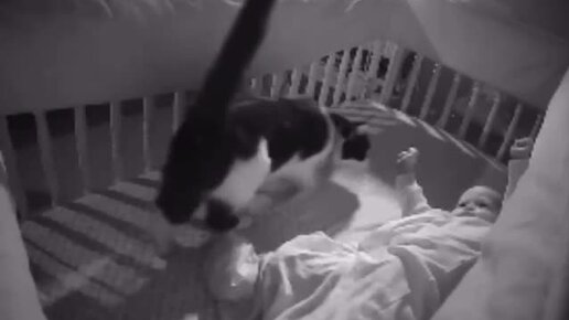 Кот попался на камеру в детской кроватке