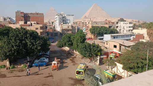 Гиза. Вид на Пирамиды с террассы дома.