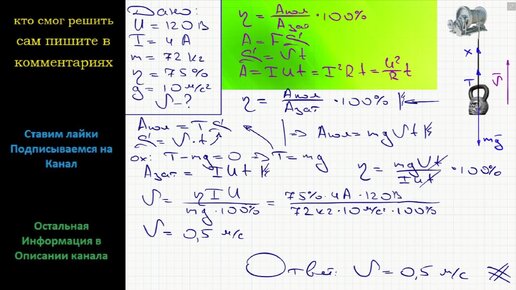 Физика Подъемник, двигатель которого подключен к сети напряжением 120 В при силе тока 4 А поднимает равномерно груз массой 72 кг Определите