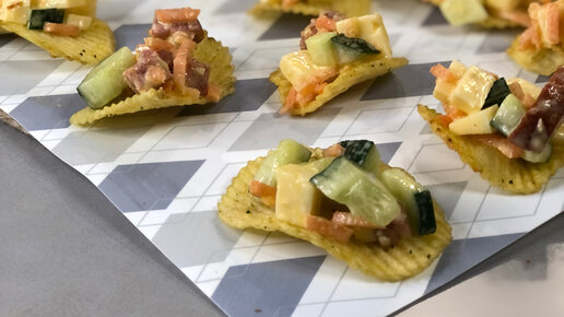 Закуска на чипсах-идеальный вариант для гостей за праздничным столом. Оригинальна,не банальна и вкусна. Рука сама тянется к ней. От нее точно ничего не останется за полчаса застолья.