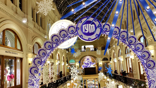 Главный универсальный магазин Москвы. Прогулка по второму этажу ГУМА. Новогодние украшения главного магазина сезона 2022-2023 года