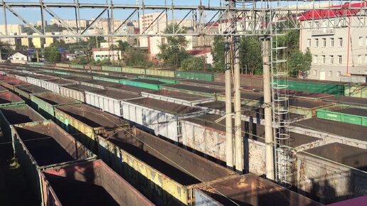 Очередь из вагонов в Мурманском порту