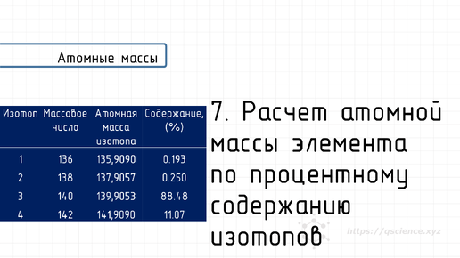 Расчет атомной массы элемента по процентному содержанию изотопов