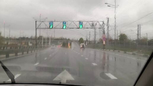 Едем на машине от нашего дома в Адлерском районе Сочи к гипермаркету Магнит в пос. Сириус, идет сильный зимний дождь...