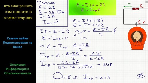 Физика Определите силу тока при коротком замыкании батареи с ЭДС 12 В если при замыкании ее на внешнем сопротивление 3,5 Ом сила тока в цепи