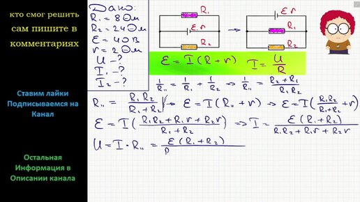 Физика Найдите напряжение U на полюсах источника тока (см рисунок) Какова сила тока в резисторах R1 и R2? Сопротивление резисторов R1 = 8 Ом