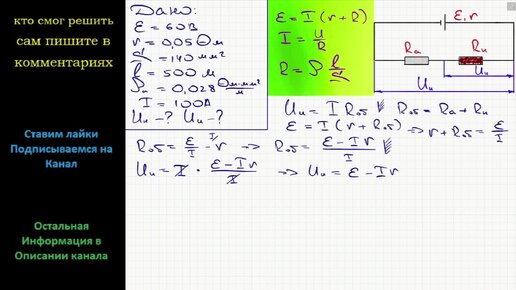 Физика Источник тока с ЭДС 60 В и внутренним сопротивлением 0,05 Ом соединен алюминиевым кабелем площадью поперечного сечения 140 мм2