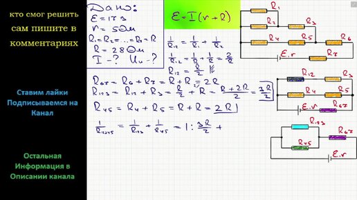 Физика Найдите силу тока источника и напряжение на источнике (см. рисунок), если его ЭДС 17 В, а его внутреннее сопротивление 5 Ом