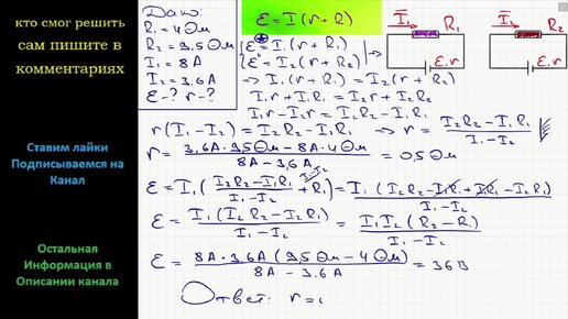 Физика Реостат подключен к источнику тока. При изменении сопротивления реостата от R1 = 4 Ом до R2 = 9,5 Ом сила тока в цепи изменялась от
