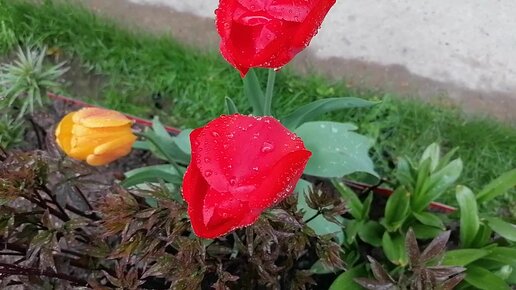 капли дождя на тюльпанах. май 2022 .
