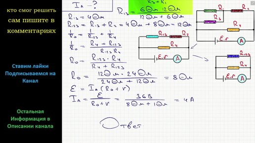 Физика Какую силу тока покажет амперметр в изображенной на рисунке цепи? Сопротивление резисторов R1 = 6 Ом R2 = 8 Ом R3 = 12 Ом R4 = 24 Ом