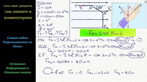 Физика Провод, сил тока в котором 10 А находится в однородном магнитном поле с магнитной индукцией 20 мТл (см рисунок) Какие силы действуют
