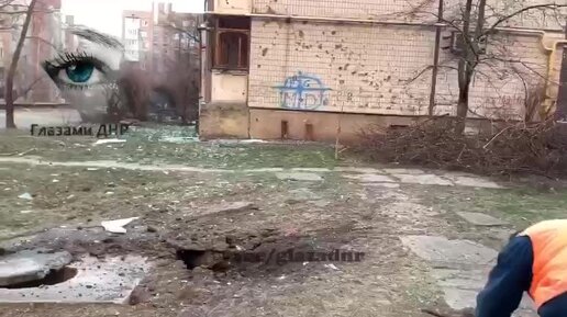 Прилет снаряда на пр. Дзержинского 2а в Ворошиловском районе Донецка