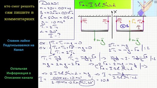 Физика Средняя часть металлического стержня массой 40 г, подвешенного горизонтально на двух проводах, находится в однородном магнитном