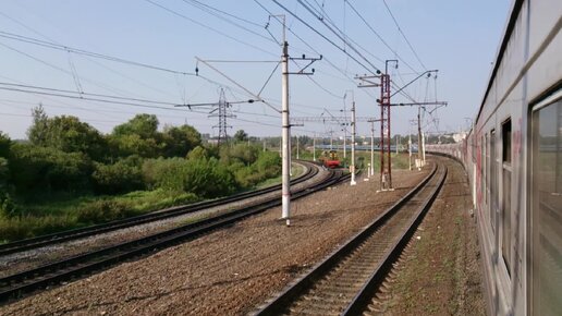 подъём после Тулы навстречу ЧС7-097 с поездом №15 Москва-Днепропетровск | из окна поезда