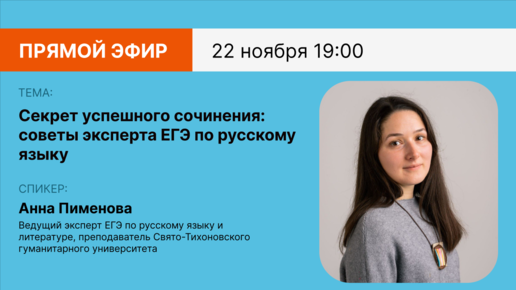 Прямой эфир. Секрет успешного сочинения: советы эксперта ЕГЭ по русскому языку.