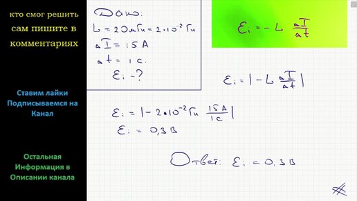 Физика Какая ЭДС самоиндукции возникает в катушке индуктивностью 20 мГн при равномерном изменении силы тока на 15 А за 1 с?