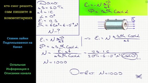 Физика Магнитная индукция однородного магнитного поля изменяется со скоростью 20 Тл за секунду. При этом в катушке с площадью поперечного