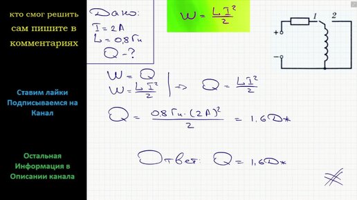 Физика Сила тока в катушке индуктивностью 0,8 Гн равна 2 А. Какое количество теплоты выделится в катушке, если ключ (см. рисунок) перевести