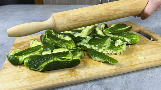 Просто отбиваю огурцы скалкой! Таких вкусных огурцов я еще не ела: попробуйте и вы будете в восторге от этой закуски!