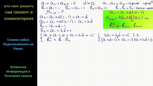 Математика Сумма трех членов возрастающей арифметической прогрессии равна 15. Если от первых двух членов этой прогрессии отнять по 1