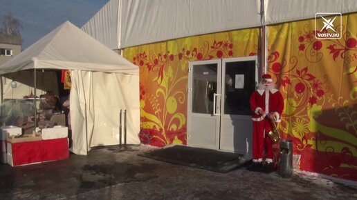 Большой ассортимент продуктов и тёплых вещей представлен на ярмарке возле Магнита