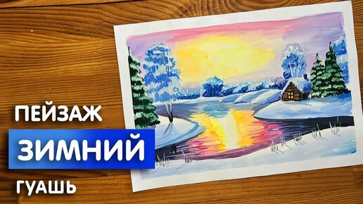 Как нарисовать зимний пейзаж гуашью для детей | Рисунок поэтапно для срисовки