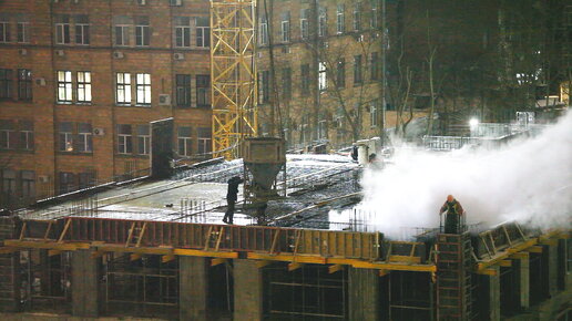 Как бетонируют в мороз. Новые технологии на стройке. Москва, вид с Бутырского Вала