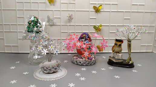 Работы из бисера и пайеток 1 часть. Снежинки, цветы, сувениры, подарки.
