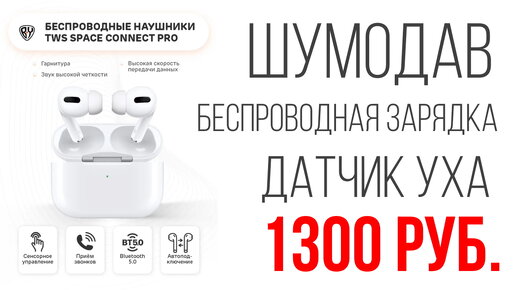 Наушники из Галамарта похожие на Apple AirPods Pro с шумоподавлением, датчиком уха и беспроводной за